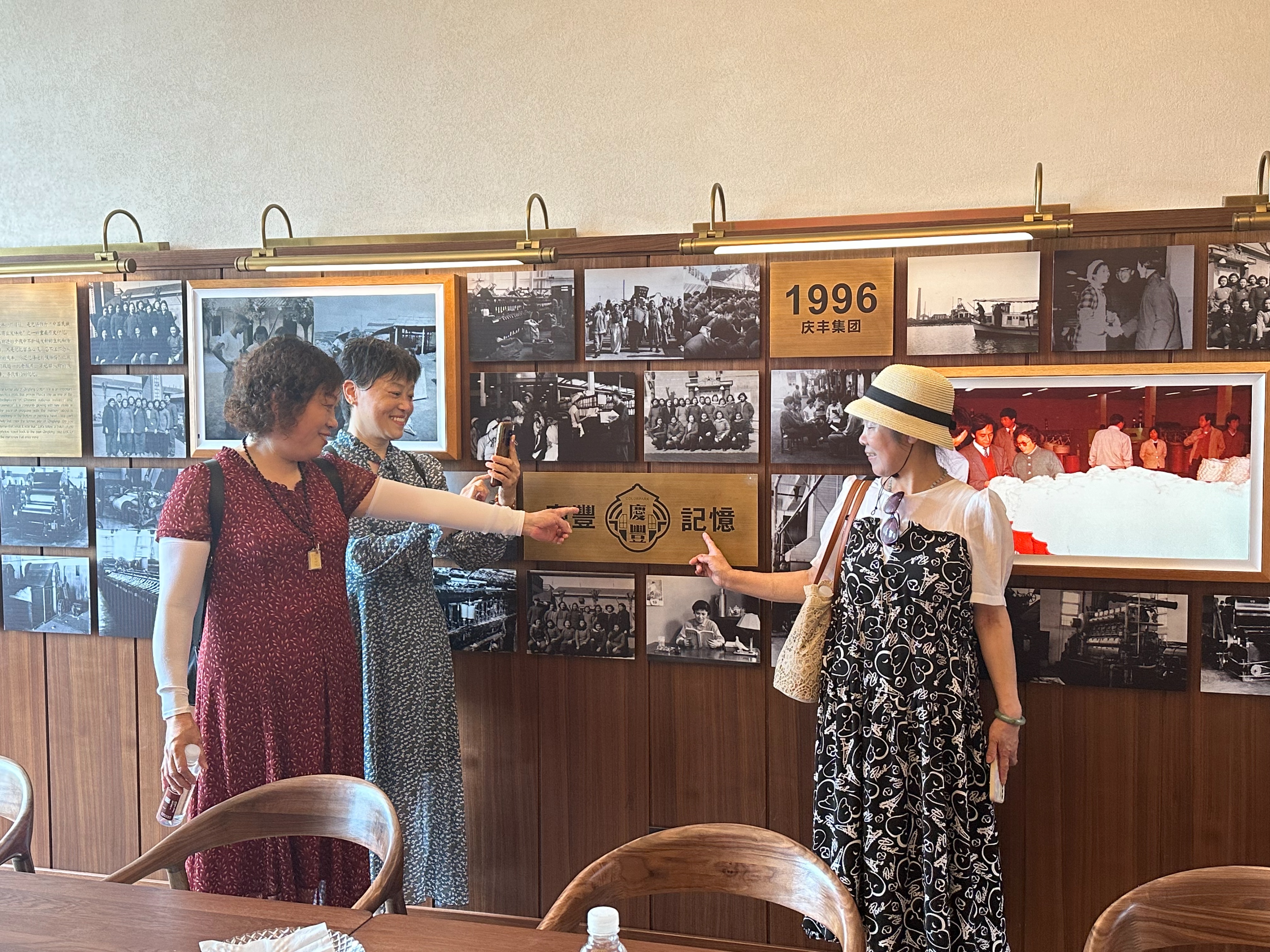 “庆丰故事馆”共三层,不仅图文并茂记录着丰纱厂的发展历史,还有珍贵的历史影像同步放映。老员工参观着展出的各式老物件,一段段回忆仿佛就在眼前。