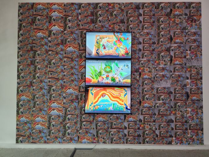 金昌烈的参展作品《人工智能和曼陀罗》从曼陀罗的图像和符号入手,试图表达曼陀罗的世界,并用人工智能进行转译。人工智能已经学习了唐代图像、韩国传统图像和曼陀罗的图像,并创造出新的图像。视频从一种繁复的角度来展示一个多维空间。