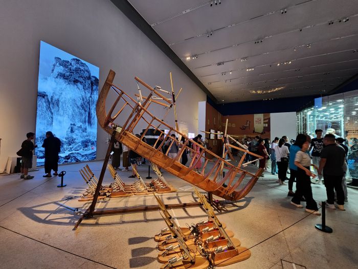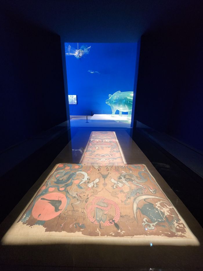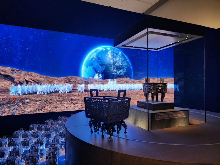 从6月30日起,一个前所未有的展览在湖南博物院一楼特展一厅亮相。来自全球30位艺术家用32件当代艺术作品,为观众展示了一个古今对话、充满互动的人文场域,其中5组艺术家首次用数字艺术的方式与湖南博物院馆藏的5件国宝级文物对话,带领观众展开一场面向数字艺术和古代文明的双向奔赴,进行一次穿越历史时空的奇妙“神游”。