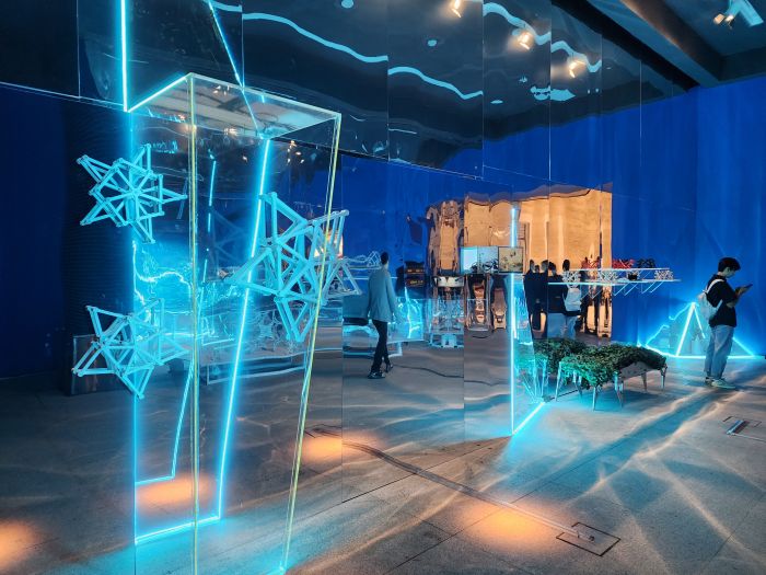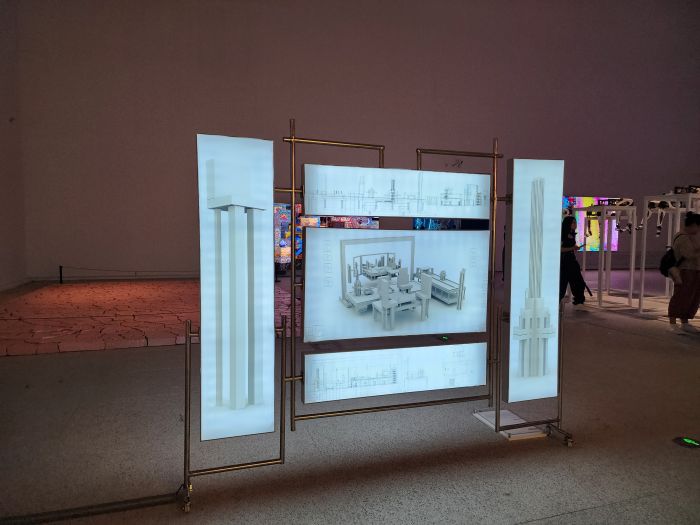 韩国新媒体艺术家李暾迓,参展作品《超越首尔·光明未来》表现了在时间和空间的模糊界限之外,一个现实和虚拟混合的世界已经到来。面对汹涌的科技浪潮,李暾迓选择从自己的历史文化传统出发,去寻找一条科技与艺术、历史融合的全新道路。