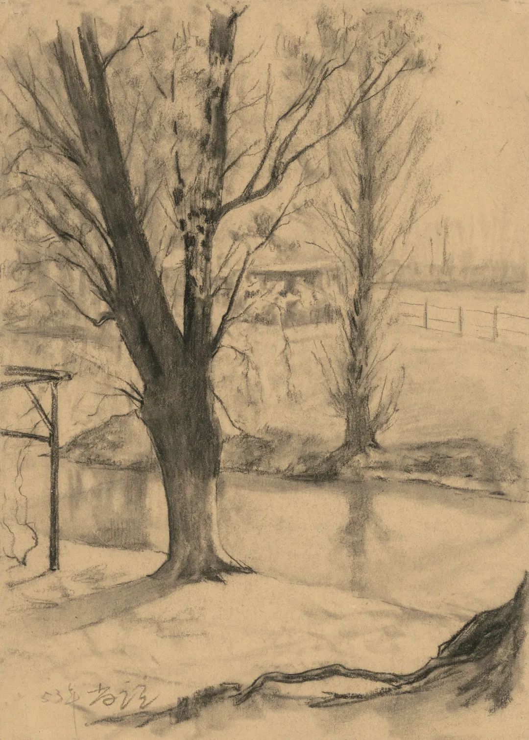 京城西郊,素描,37.5cmx29.5cm,1953年