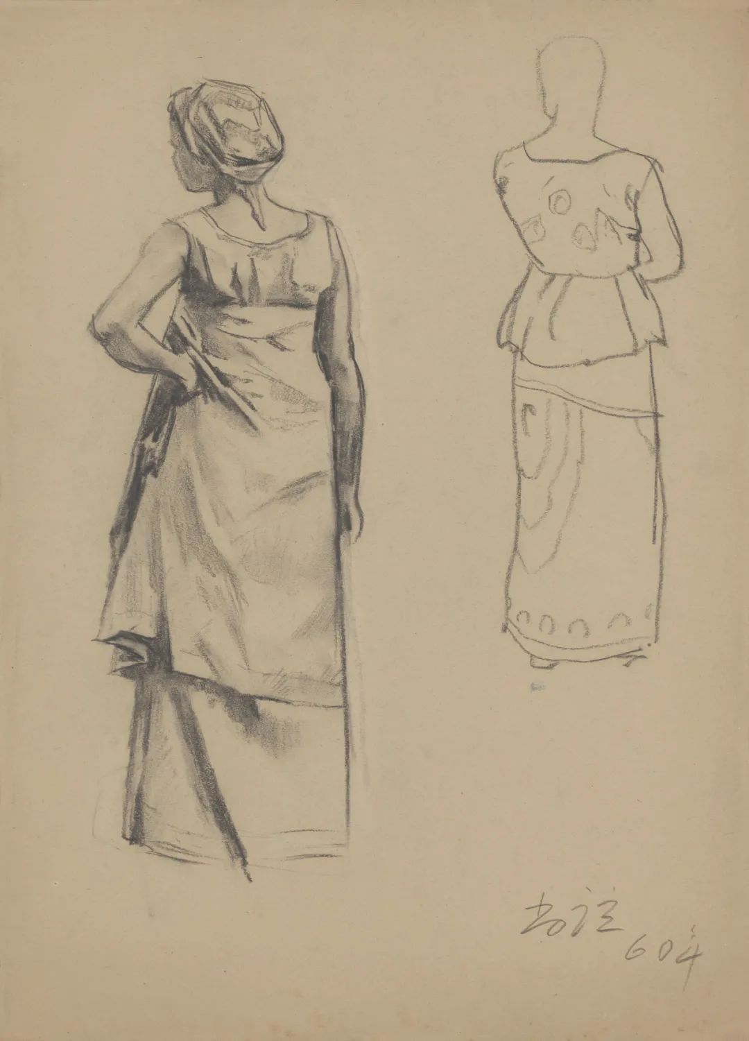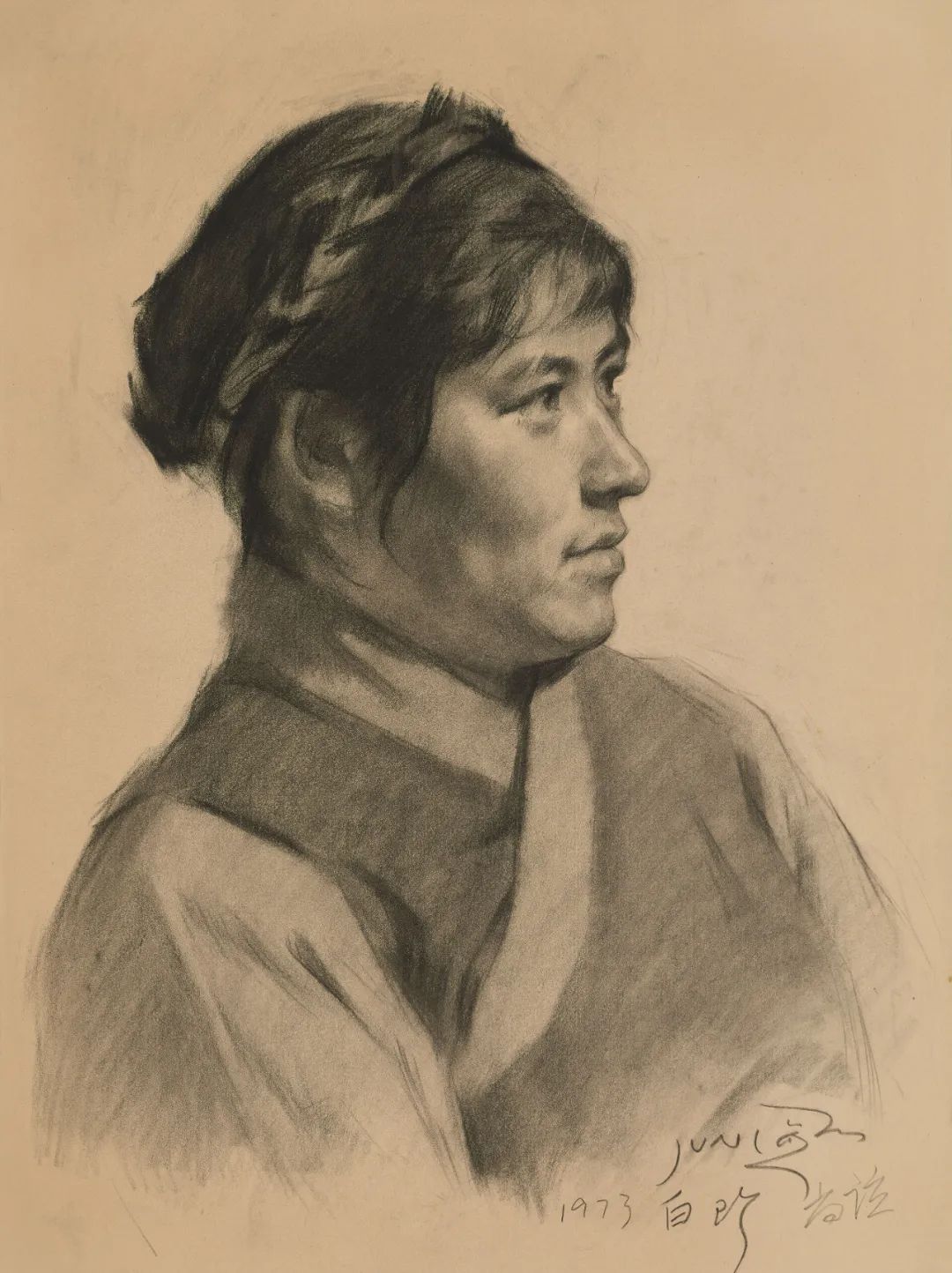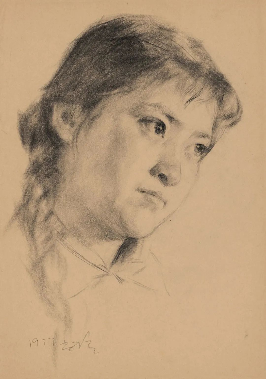 农展馆讲解员,素描,39.5cmx27cm,1973年