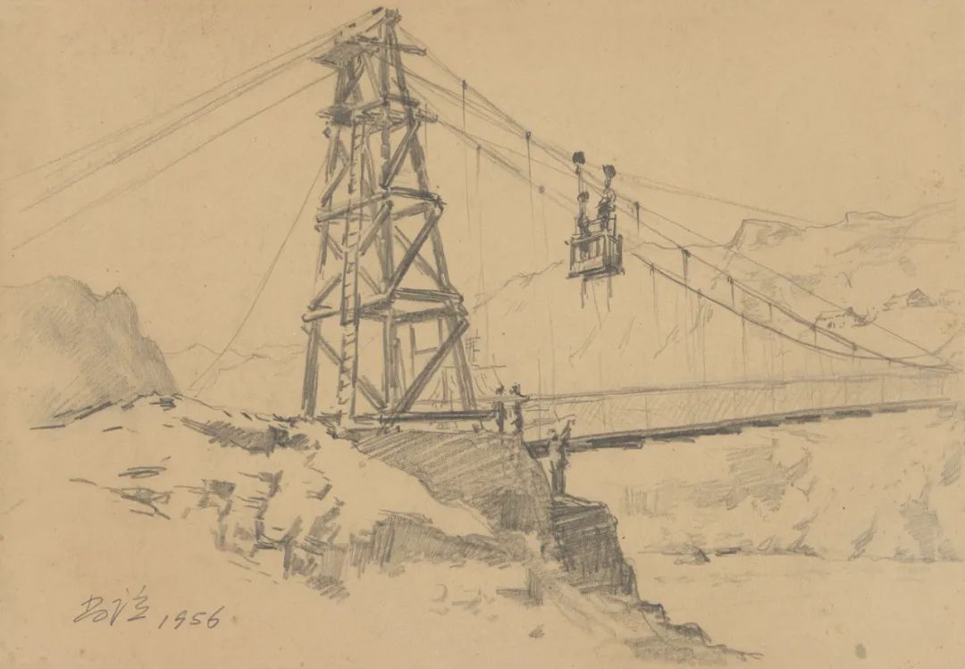 通过鬼门的索桥,素描,27.5cmx39.5cm,1956年