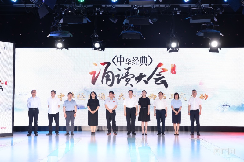伴随着演出的结束,现场嘉宾共同上台为“中华经典诵读大会”(第一季)山西站进行启动。