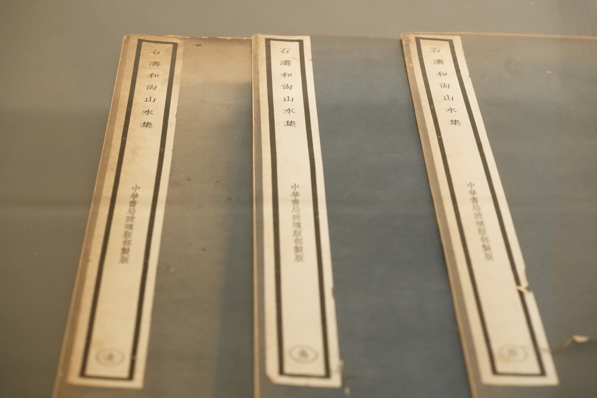 据介绍,此次在苏州山水美术馆展出的“石涛与大千——好古书房藏珍稀文献展”展品主要是1949年前出版的珂罗版画册,以及域外出版的较为稀见的图籍。均由艺术研究者田洪提供。田洪以集藏中国艺术史图册闻名海内外,尤其偏好石涛与大千,数十年狂胪文献,集腋成裘,而今,已然蔚为大观。他将搜集到的资料仔细爬梳研读,发现了很多石涛作品的双胞胎,甚至多胞胎,以及张大千临仿石涛的作品,并将所藏的珍稀文献公开展出。