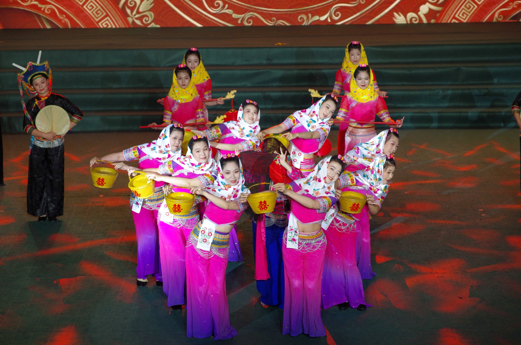 喜庆欢快的陕西横山腰鼓《庆丰收》表演为晚会拉开序幕。演出以综合性文艺晚会形式呈现,既有高亢激昂秦腔《梁红玉》《杜甫》选段,也有婉转细腻的福建南音《春潮》;既有陕西本土舞团的舞蹈《红妆》,也有福建民俗舞蹈《惠女婚嫁情》;既有原创民谣《户县》,还有福建传统的高甲戏《管甫送》、提线木偶戏《钟馗醉酒》。