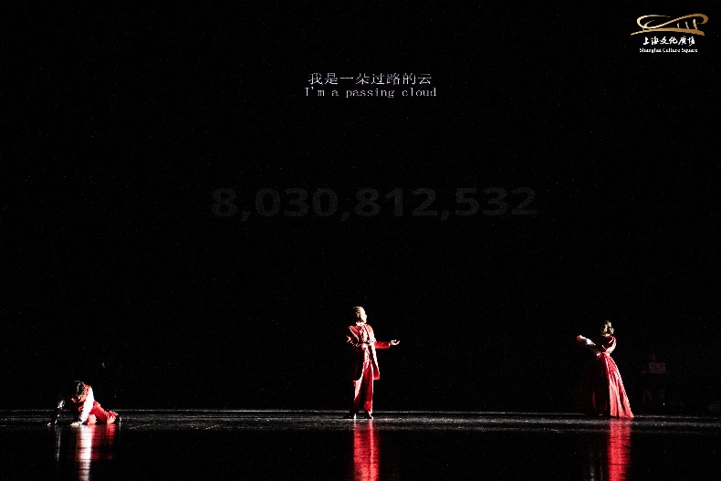 舞台上空无一物,所有演员身着红色戏服,简洁的舞台和冷峻的灯光,让这部戏剧有着一种当代艺术的质感。演员们在台上或坐、或躺,一朵抽象的云不时出现在舞台。多媒体和灯光中,演员有时静默。俄罗斯文学和以色列戏剧就这样交织在舞台,呈现出一种诗性的、当代的戏剧体验。