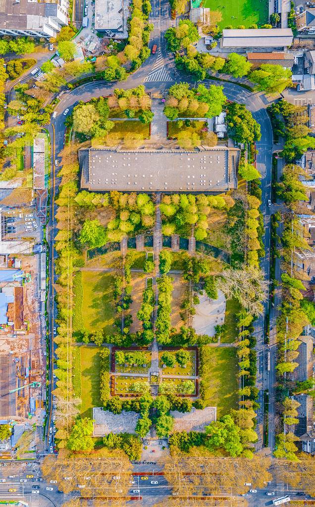 航拍午朝门公园与明故宫遗址公园。视觉中国供图