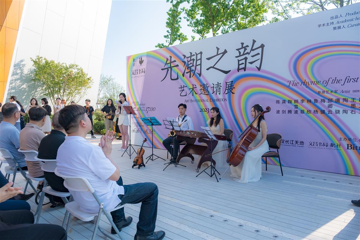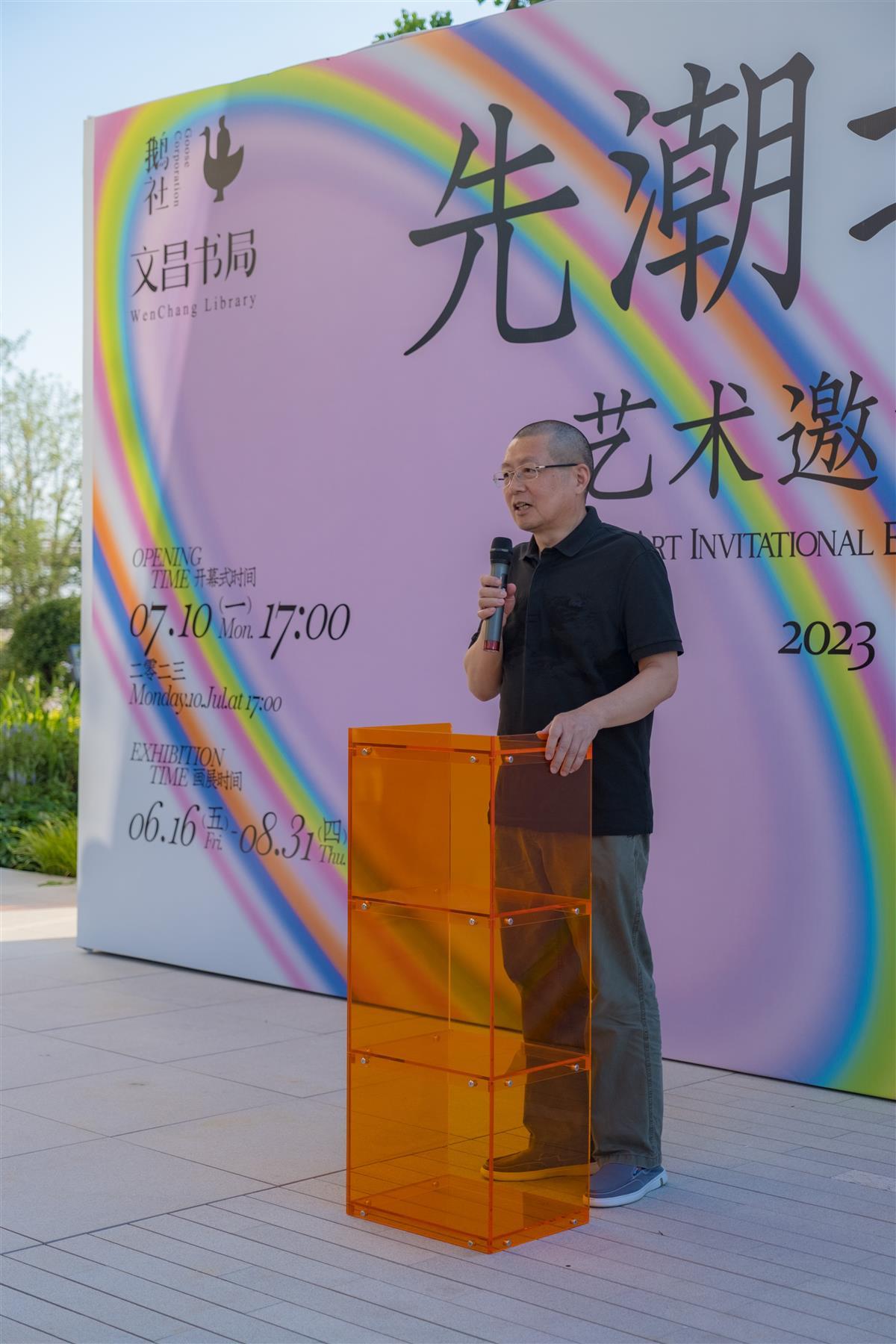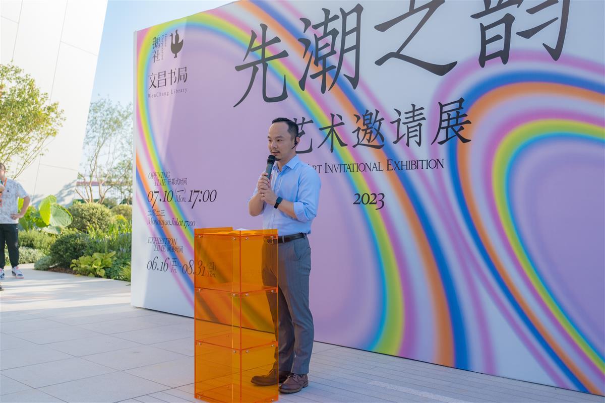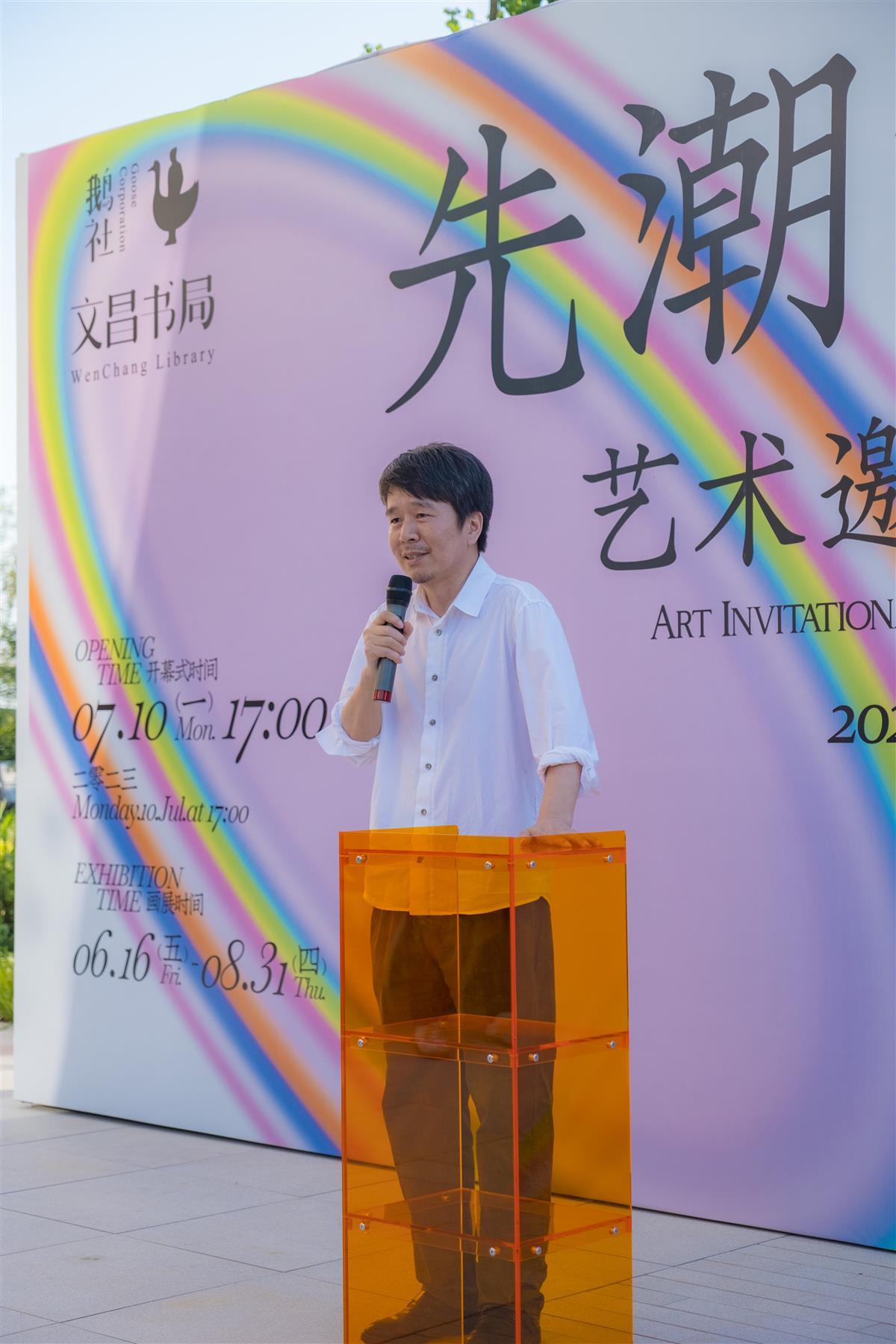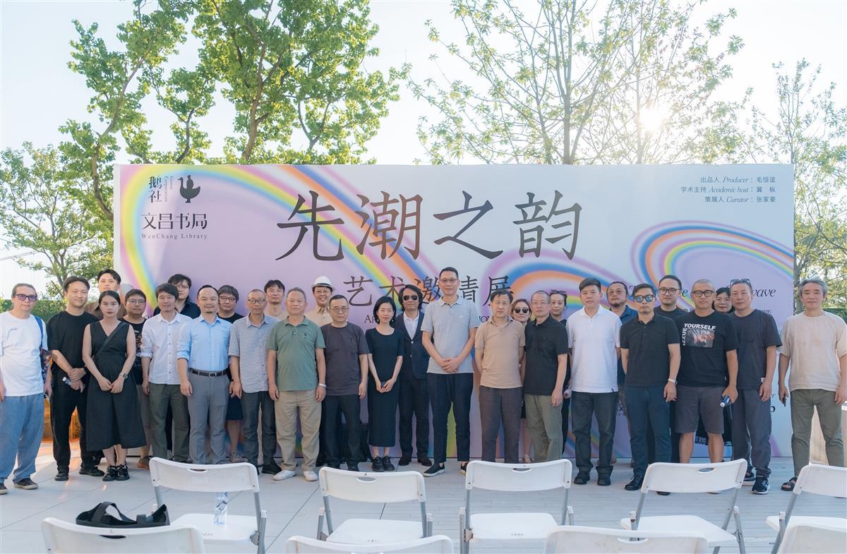 7月10日下午,“先潮之韵”艺术邀请展,在文昌书局·鹅社开展,为该书店迎接读者启幕。魏光庆、王志新、刘茂平、鲁虹、刘宇、王心耀、徐文涛、彭柱武、耿青华、潘奇等企业界和艺术界人士出席开幕式。