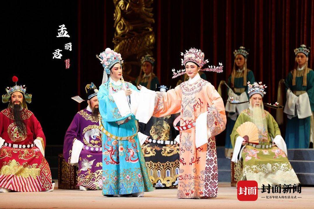 作为绍兴市越剧团“同唱一台戏”全国巡演剧目,越剧《孟丽君》取材于清代杭州才女陈端生长篇弹词《再生缘》,讲述了才女孟丽君为救被权奸陷害的未婚夫——皇甫少华一家,女扮男装离家出走,后中试,官居丞相。元成帝识破丽君乔装,欲纳为妃,丽君不从,后在太后帮助下,丽君得以救忠除奸,与皇甫少华完婚。