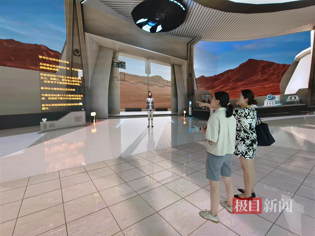 工作人员介绍,“沉浸式航天元宇宙”是新华社国家重点实验室利用先进半导体显示硬件和计算机图形技术、空间信息技术等前沿技术建设的线下数字科普基础设施。它使用遥感数据,构筑超仿真月球、火星、黑洞及其他天体的数字环境,可支持新闻报道、科普传播、航天任务模拟、航天员训练等,使用户获得“抵达”太空场景的沉浸式体验,以“全身心进入”的形式感受强烈的视觉和感官冲击。