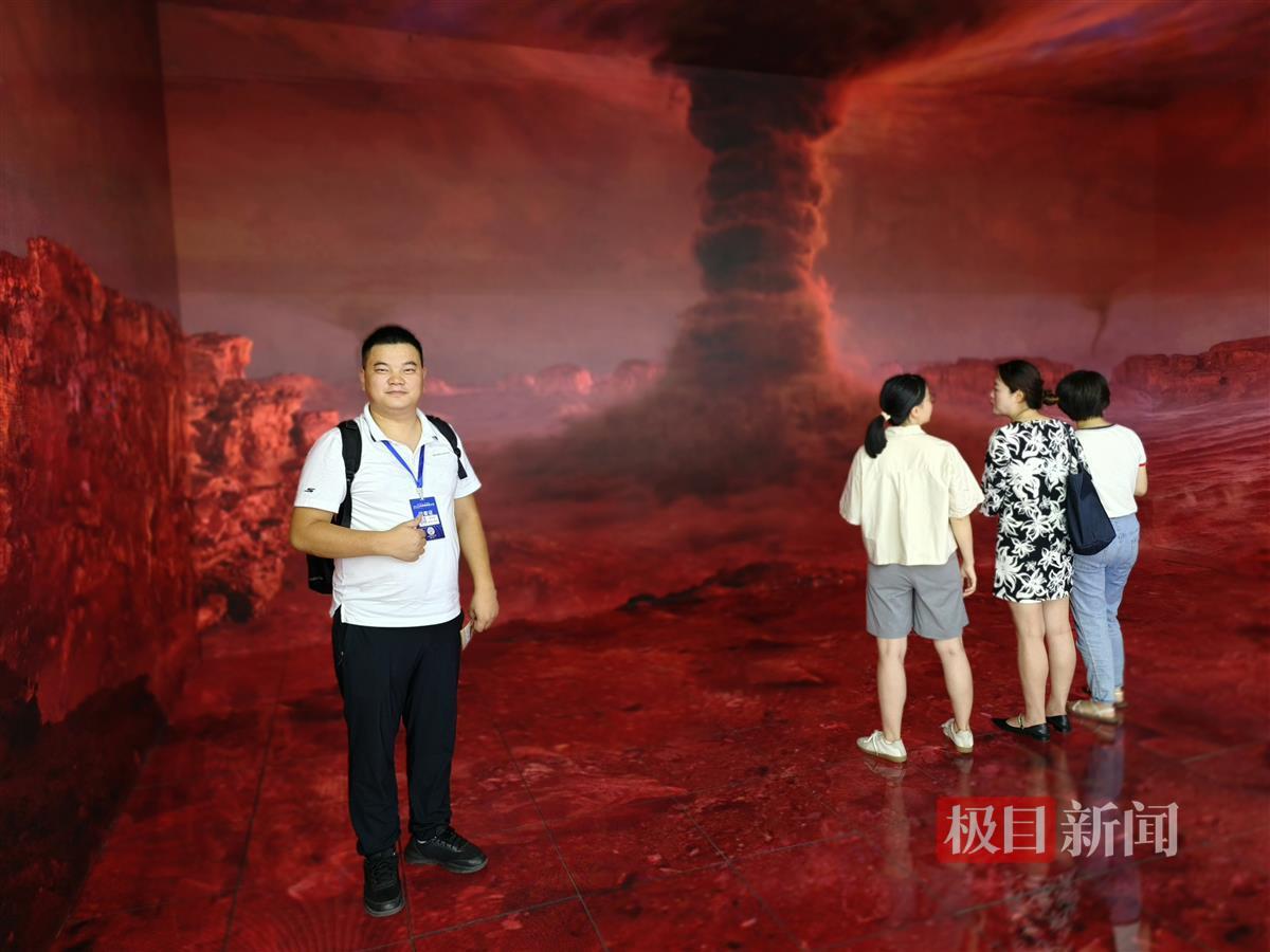 7月11日中午,极目新闻跟随新华社国家重点实验室工作人员一同体验,步入特定空间,很快四周就出现了太空场景,如火星、黑洞,立体场景十分逼真。一会是龙卷风呼啸的场景,一会是火星平原,在数字航天员的带领下,记者“脚步不停”持续向前探索,不一会就来到了火星表面最高的火山——奥林匹斯山。现场,许多老人、小孩也纷纷走进场馆,体验智媒技术赋能媒体深度融合的新应用、新场景。