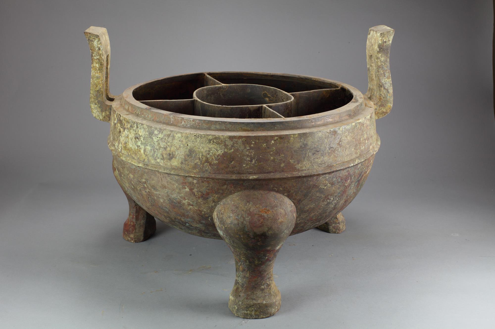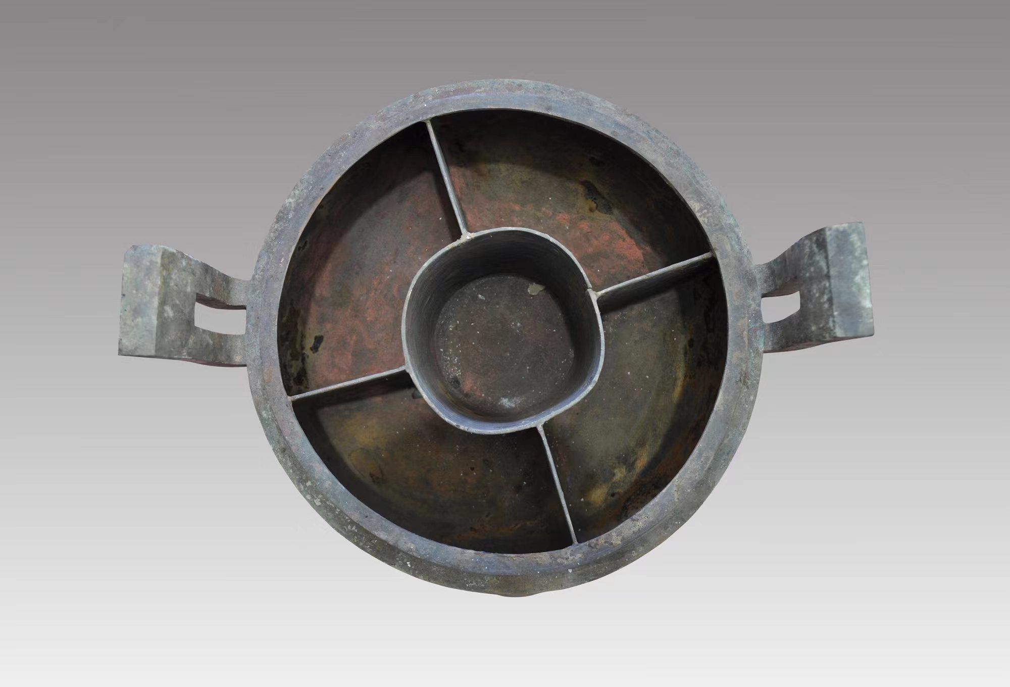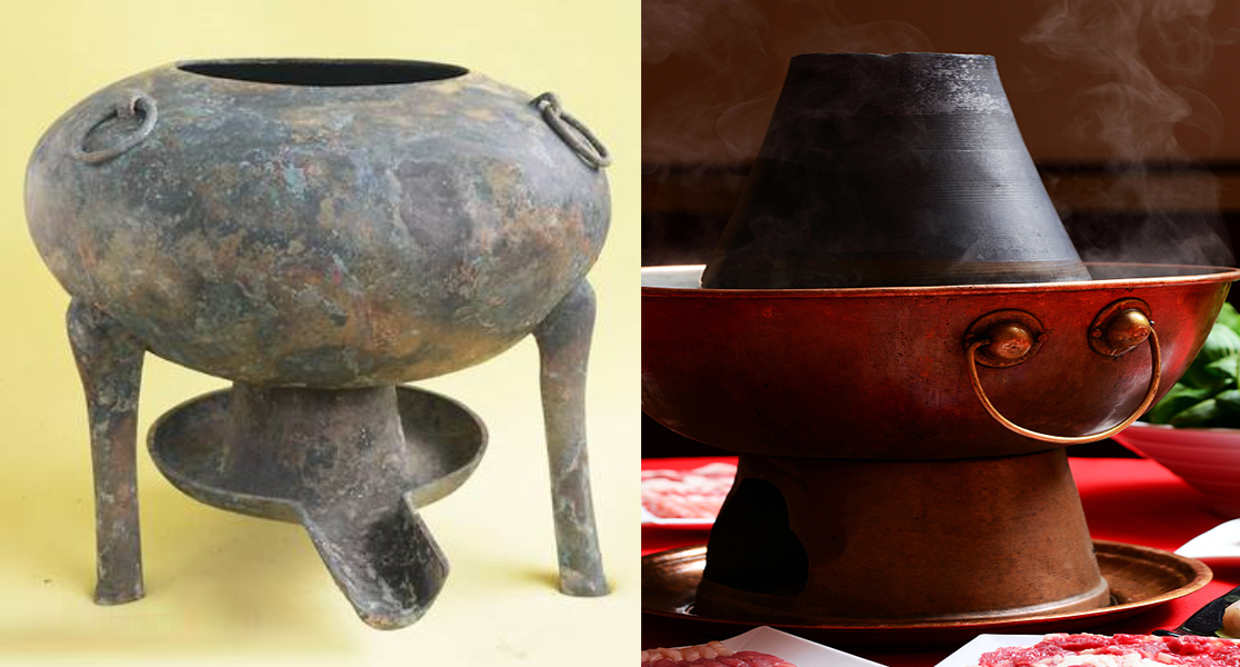 △海昏侯墓出土的青铜三足鼎与现代涮肉铜锅相似