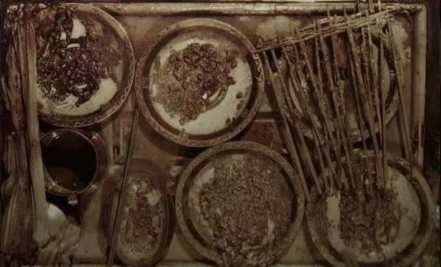 △马王堆辛追墓巨型椁室发现全套的餐具,以及菜、汤和烤肉串