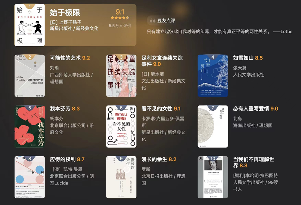 当然,没有一份榜单是完美的,或者说是“绝对正确”的。文学作品真正的价值也不仅仅局限于当年,好作品的生命力会在更长的时间里得以显现。