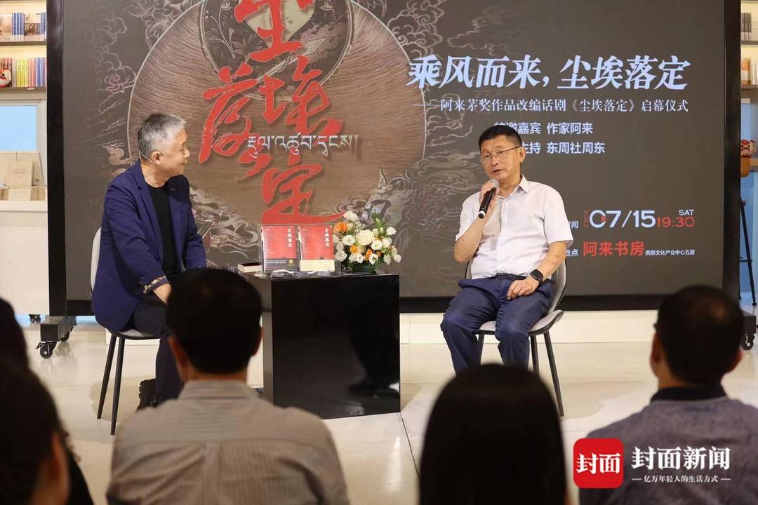 这是阿来在茅奖领奖台上的获奖致辞《随风远走》里的片段。7月15日晚7点半,随着主持人周东的深情朗诵,阿来茅奖作品改编话剧《尘埃落定》启幕仪式在阿来书房拉开大幕。现场正式对外宣布,话剧版《尘埃落定》将于2023年9月15日至17日首登成都舞台,在高新中演大剧院与成都观众朋友们见面。