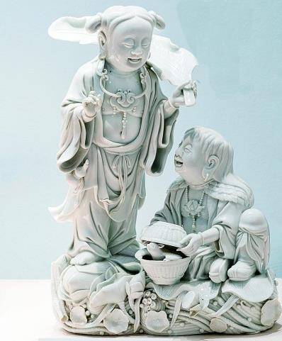 展览第一单元“泥根玉雪元无染”,从“君子如莲”的角度去解读儒家文化中的莲荷意象。先秦时期,莲花成为儒家的“比德”之花,象征士大夫的芳洁之志,是“花中君子”人格意象的起点。屈原以“莲花”寄托高洁志向,使其具有人格特征。汉代人们视莲花为祥瑞。唐代文人赋予“白莲”清净不染的品性,使其“君子之义”进一步显现。宋代大儒周敦颐一生为官廉洁奉公,施泽于民,并以名篇《爱莲说》定格了莲花“中通外直”“亭亭净植”的清廉君子意象和文人节操。第二单元“莲花影里数楼台”,从“花开见佛”“以莲喻道”去阐释佛道,以莲花之洁净比喻出于世间而清净无染的品质,赋予莲荷光明、美好、高尚和圣洁的意象。第三单元“映日荷花别样红”,从“和和美美”“福寿永年”“荷风满堂”的角度展示了世俗文化影响下与莲有关的吉祥图形和词语。明清时期,民间因“荷”“和”谐音,以及莲荷文化蕴含的“以和为贵”的理念,将莲荷作为爱情幸福、婚姻美满、多子昌盛、生活富裕、生生不息等涵义的吉祥物,和谐、和睦、和合的“莲荷意象”得以确立。莲荷在中国园林中更是“点睛之笔”,赏荷、咏诗、品酒,是园林生活中的盛事,也是寄托情志的重要方式,展现出人与人、人与自然和谐共生的美好画卷。