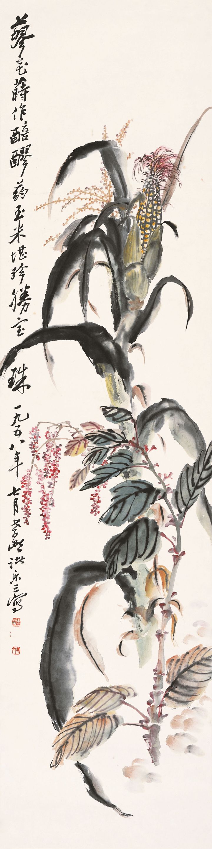 1958年作《玉米蓼花》(中国美术学院藏)136×33cm