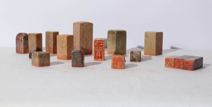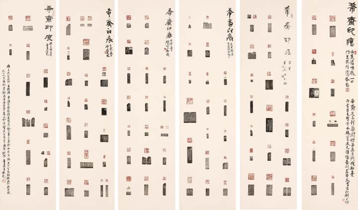 诸乐三印屏(陈振濂、朱关田、王冬龄、祝遂之、邱振中、童衍方题)(私人收藏)196×38.5cm×6