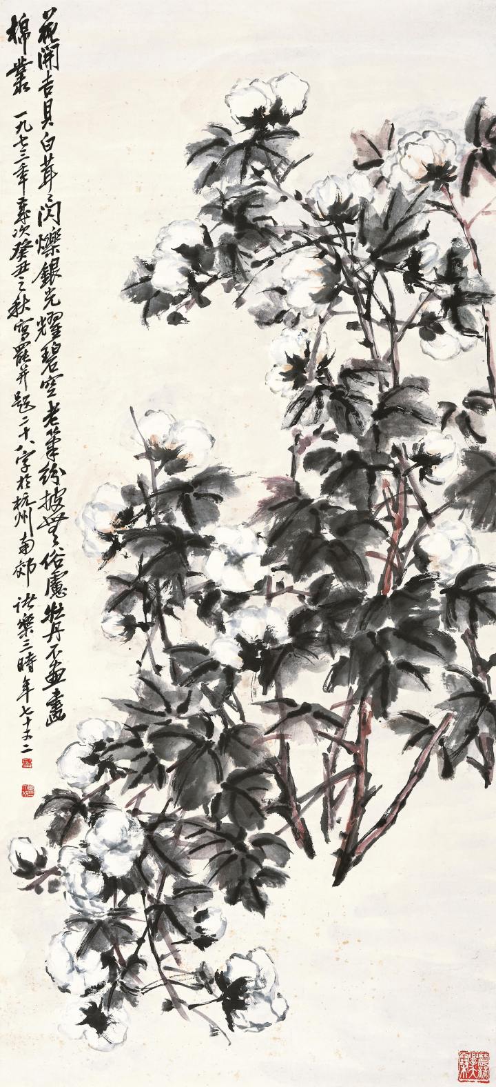 1973年作《棉丛图》(中国美术学院藏)138×63cm