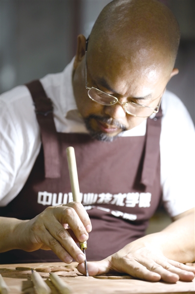 陈正民正在雕刻。南方工报全媒体记者林景余摄