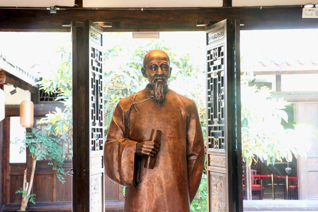 进入萧公馆,正中央是一尊萧龙友手握书卷的铜像。看着这尊像,让人想起了平时所看到的李时珍画像。“对,李时珍以前没有画像,蒋兆和照着老丈人萧龙友的样子,画出了李时珍的画像。”萧公馆讲解员唐蓉说。