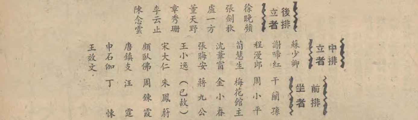 1919年,丁悚、杨清磬、江小鹣、张辰伯、刘雅农和陈晓江成立天马会。这才会发生文章前头那个“五马奔苏”的趣事。为了给天马会造一个会所,杨清磬、丁悚等发起人还发挥自己的戏曲爱好开了一个剧艺会想筹募点建造的资金。在《天马会义演笑料》中,丁悚写到有一年要为“天马会”筹款,发起了义演京剧两天,凡是天马会的发起人和会员都要登台表演。丁悚在《玉堂春》里扮演替医生背药箱的童儿,杨清磬参加了《虹霓关》的演出。(p71、72丁悚著、丁夏编《四十年艺坛回忆录》上海书店出版社2022年)丁悚和杨清磬也是文艺叙餐会“狼虎会”的成员。日本画家桥本关雪访沪期间,与上海文艺圈“花间雅宴”,丁悚、杨清磬都参加了。