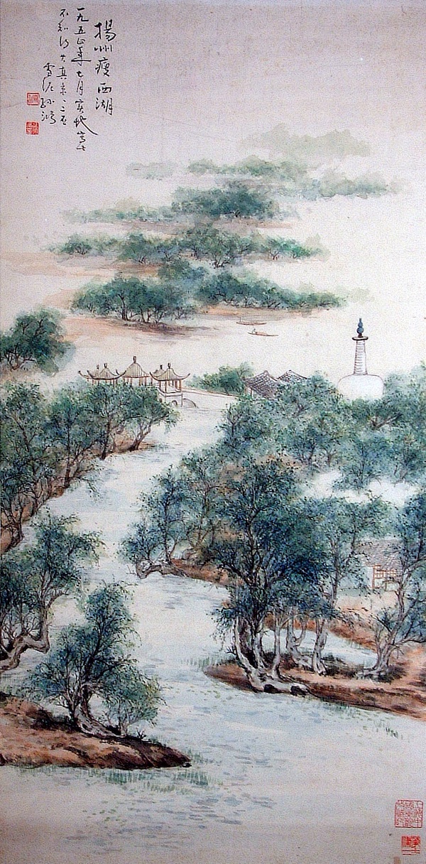 孙雪泥《扬州瘦西湖》 1954年纸本设色105×51.5cm上海中国画院藏