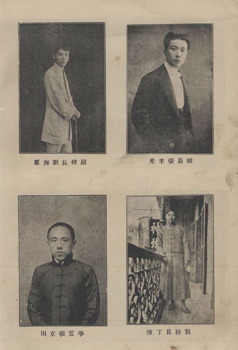 教务长丁悚、副校长刘海粟、校长张聿光,刊于《美术》第1期第1页,1918年