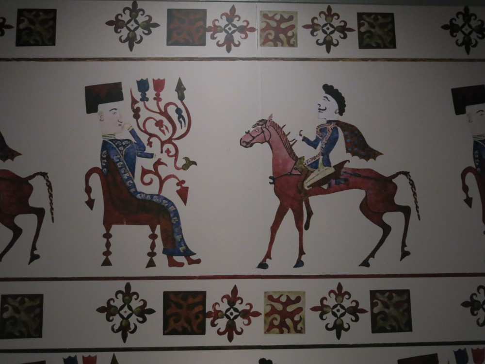 当我抱着这个疑问,尚未得解时,恰好去中国丝绸博物馆参观了一个名为《丝路岁月——大时代下的小故事》的展览,在展览上,我与一块出土于南西伯利亚巴泽雷克谷地的挂毯相遇了。毯上图案为:塔比提(Tabiti)女神坐在椅子上,手持树枝,前面是一位骑马的贵族。