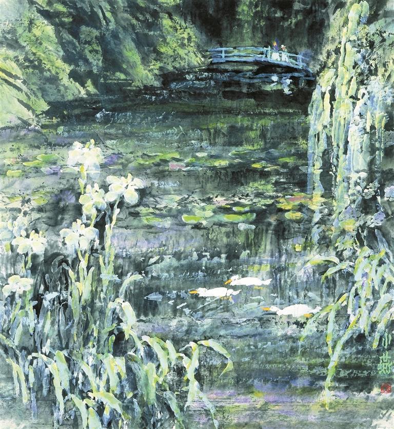 水墨画,也称国画,是中国绘画的代表。中国的水墨艺术是渗透人类精神的一种“唯意艺术”。本次展览主视觉以王小燕画作《荷塘》为基底:野鸭戏水,垂柳依依,一派绿意盎然。“之所以选择这幅作品,就是希望借由水墨艺术之雅趣,给观者以静心、清凉之感。”王小燕说。