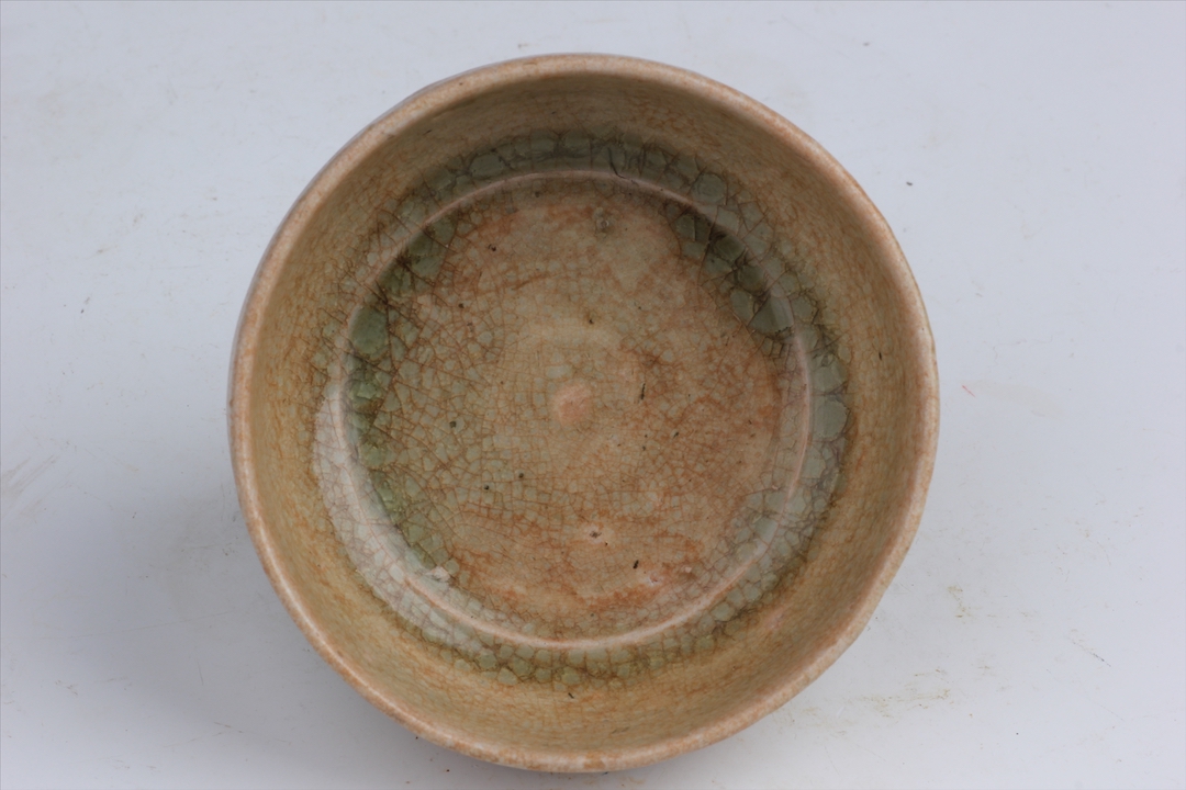 此件青瓷水盂外壁出现大片月白色乳浊釉,非常少见。乳浊釉本是烧造过程中偶然出现的瑕疵,在后世发展成一种独特的装饰工艺。