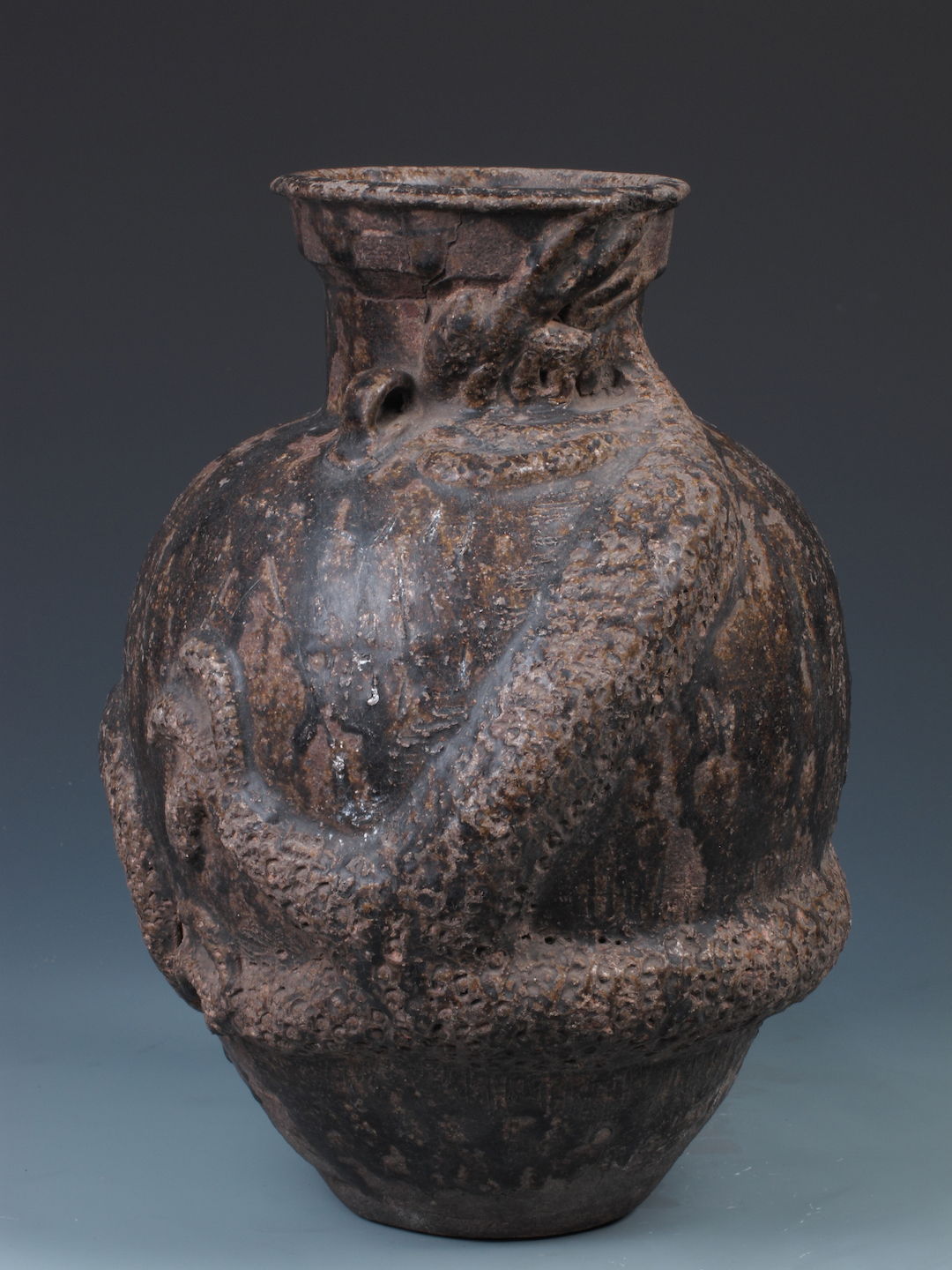 宋代是婺州窑堆塑工艺的另一繁荣期。婺州窑堆塑瓶多装饰杂技人物、送葬祭祀、十二生肖、龙虎形象等,并出现了高耸如塔的堆纹瓶,具有鲜明的地方特色。