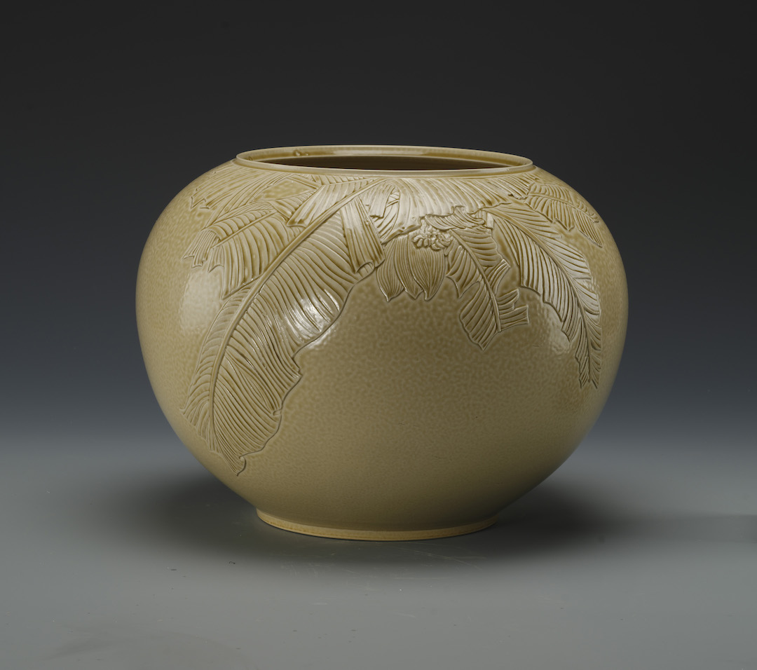 草木灰釉,浅浮雕芭蕉叶,寓意家大业大。