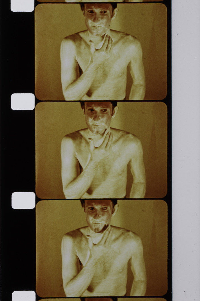 布鲁斯·瑙曼,《艺术化妆》,1967–1968年,四段16mm胶片转数字录像,彩色,无声,每段时长:10分钟