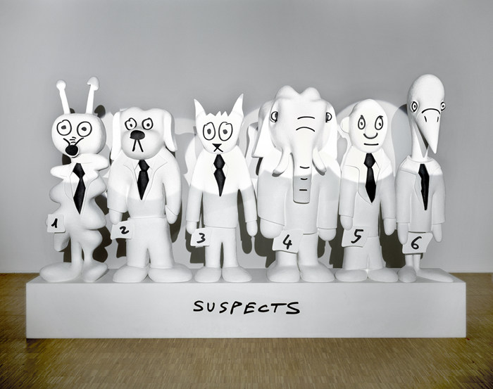 阿兰·赛沙,《嫌疑人》,2000年,聚酯纤维、丙烯颜料、音响、射灯,音乐:阿尔弗雷德·舒尼特克《平安夜》,220×360×70厘米