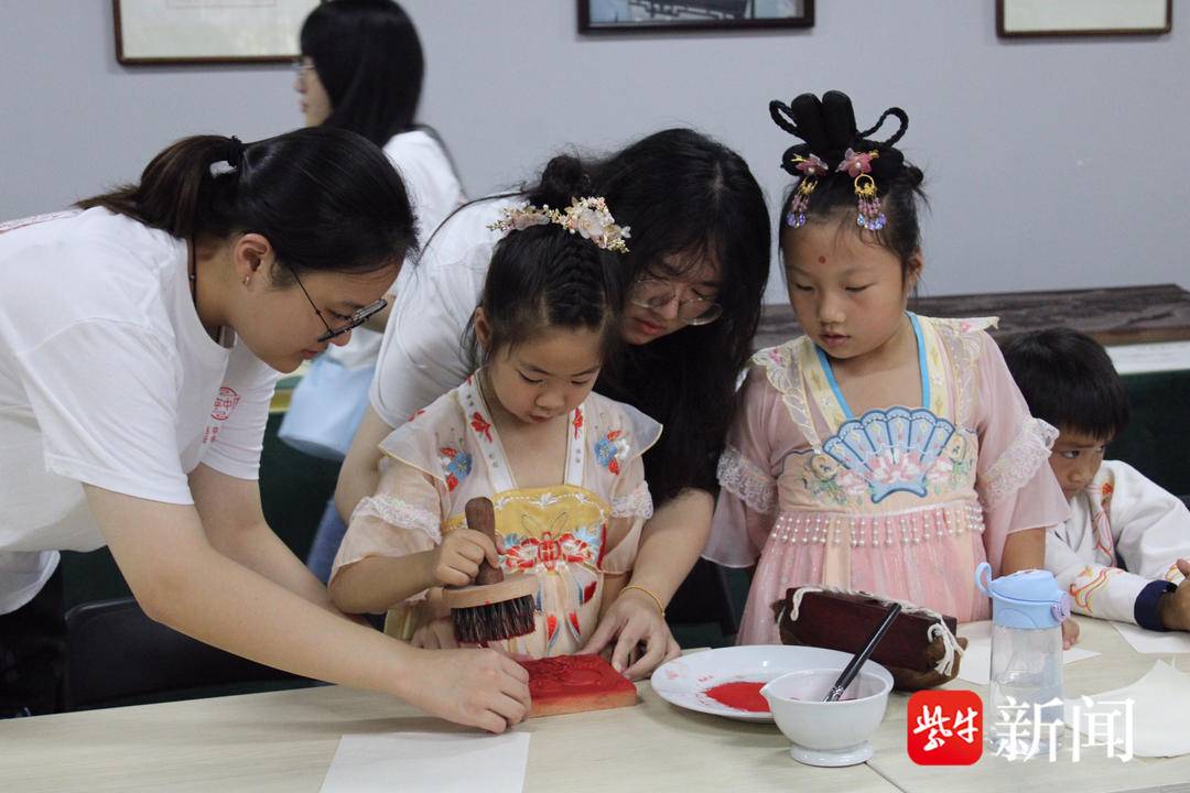 扬子晚报网7月19日讯(通讯员唐可人张辰奕记者陈咏)“小朋友们,棕帚供墨时,要用它的底部由外向内从墨盘上蘸墨水,一定要轻轻的……”窗外蝉鸣声声,宁静古朴的工作室内,孩子们聚精会神地观察学习雕版印刷的拓印技艺流程。暑期,扬州大学文学院“字里寻根,江山红遍——经典传习社寻‘字’中国实践团”成员,带领邗江区杨庙镇新杨村的孩子们走进扬州运河雕版印刷技艺传承保护中心,沉浸式体验传承千年的古老技艺——雕版印刷。