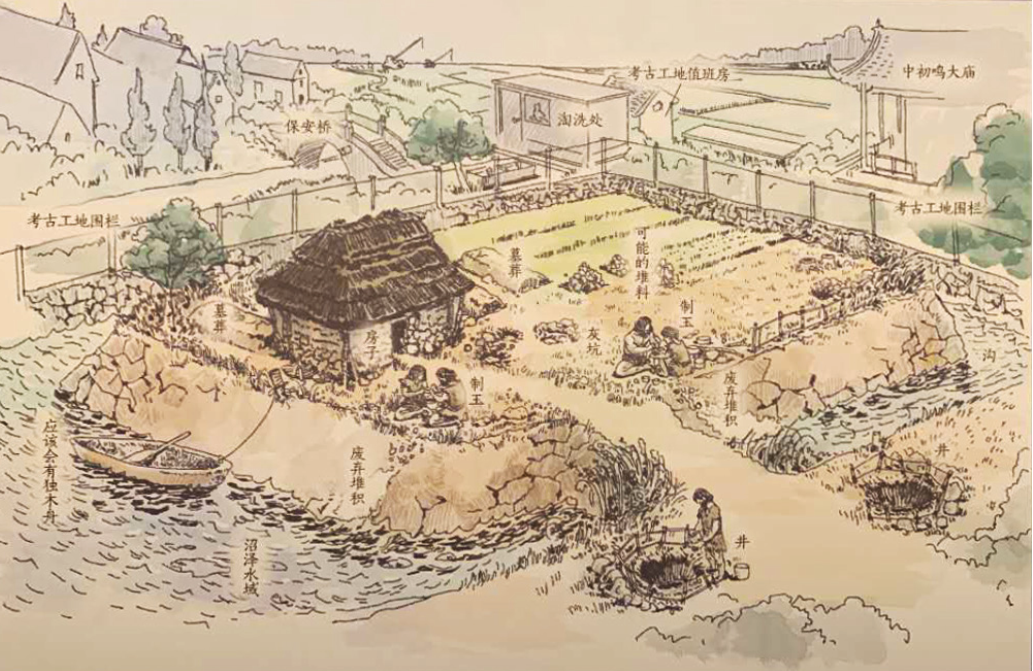 这是迄今为止长江下游地区发现的良渚文化时期规模最大的制玉作坊遗址群,已出土了3000多件玉器和陶器等良渚时期的文物。