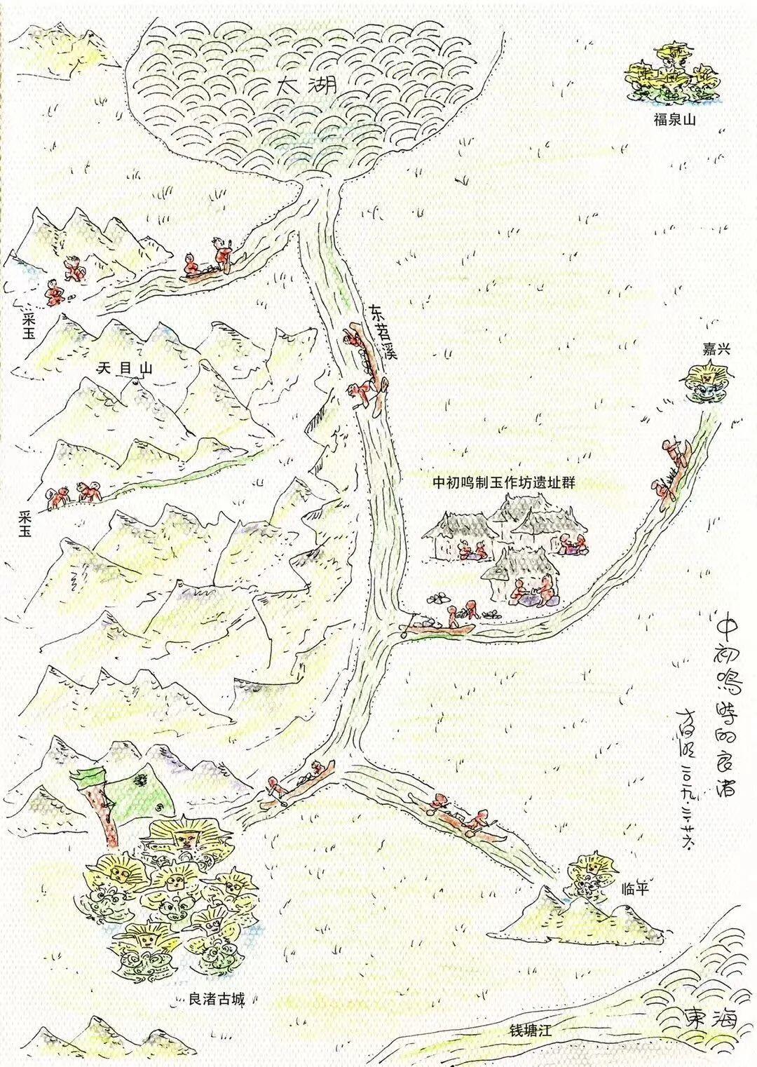 ▲德清中初鸣良渚文化制玉作坊遗址群考古队领队方向明手绘地图