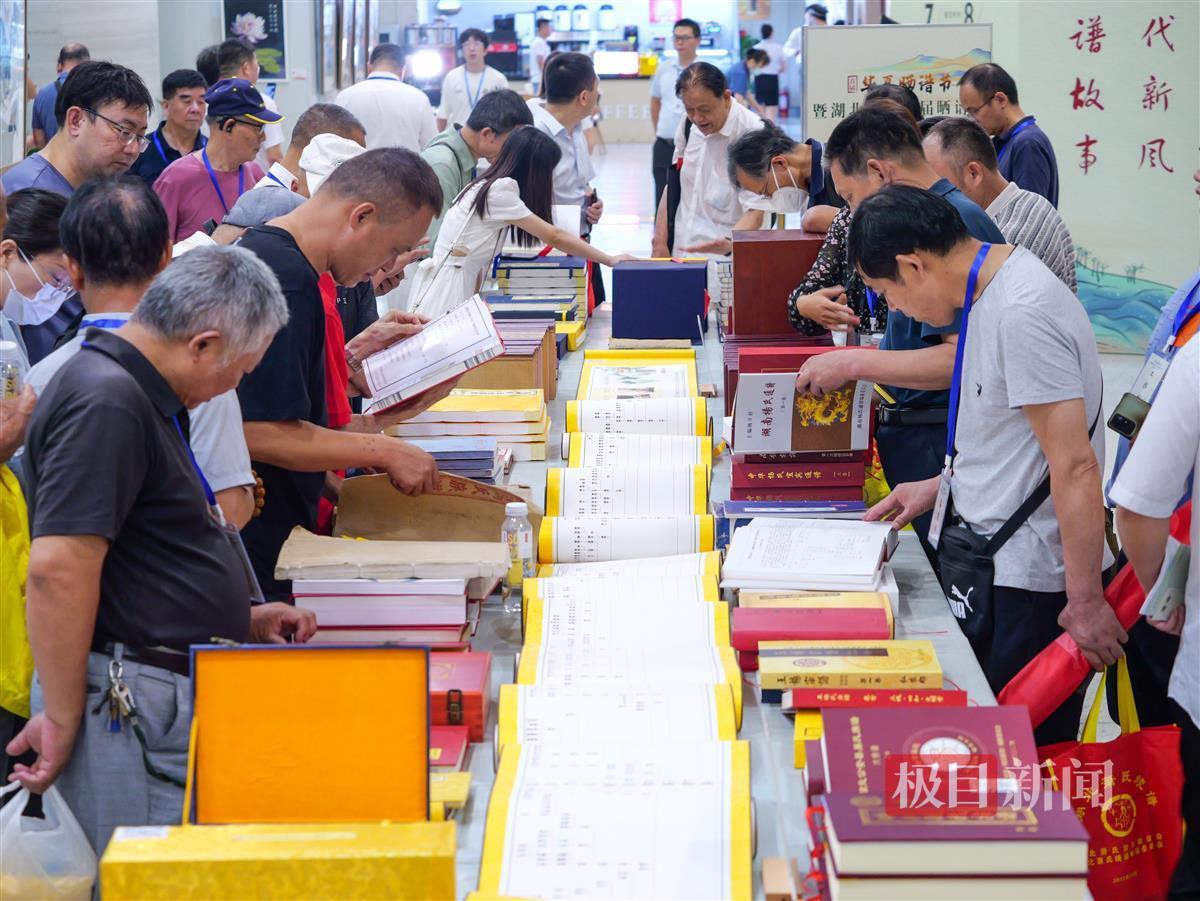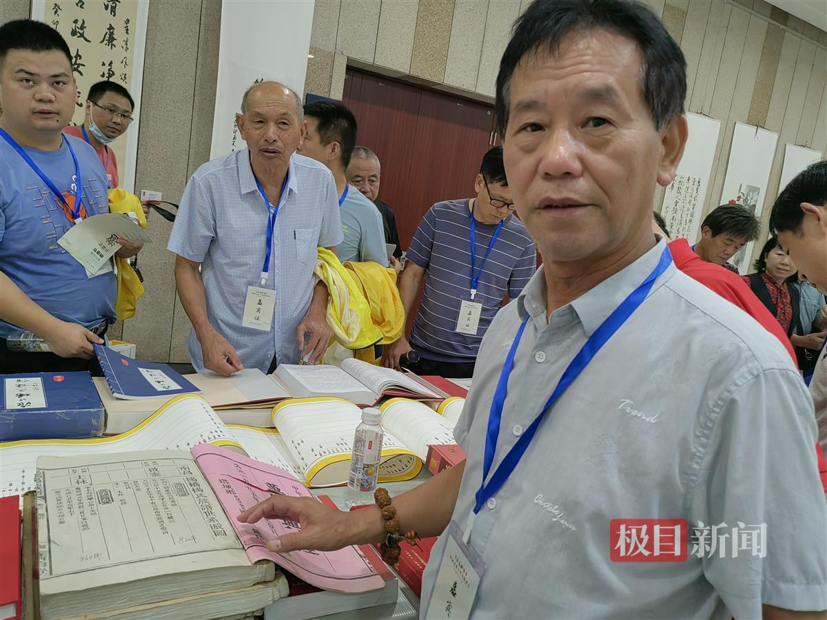 晒谱现场,不少读者是从外省赶来参加活动的。来自江西南昌的杨心华先生,今年63岁,是南昌石桥杨家家谱的编修者之一。他带来的家谱一看就有些年份了。他说,南昌石桥杨家保存有上世纪30年代的老谱,这次他们带来的《杨氏族谱》是1995年翻印的版本。老谱记载了杨家从唐朝第一世祖到今天的世代记录,族谱中记录第一世祖生于唐元和十五年,在族谱记录的约1200年时间里,共历40代人。杨心华翻开家谱告诉极目新闻记者,“这里面还收录了一些古代圣旨,历朝历代杨家人做官的情况。”他介绍,目前南昌石桥杨家族人在当地生活的有3000多人,包括外迁的人超过10万人。