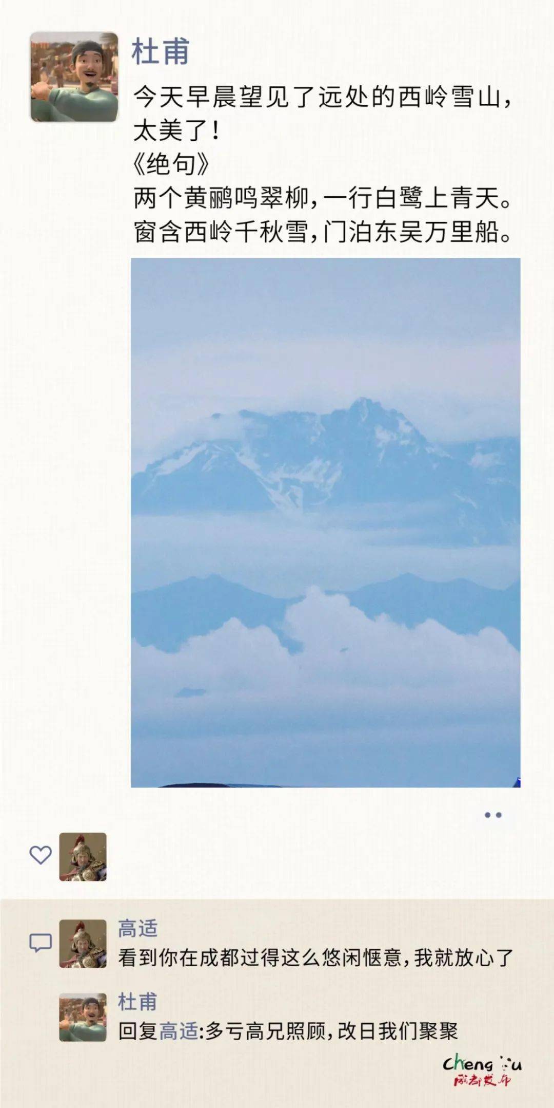 挥笔写下《人日寄杜二拾遗》