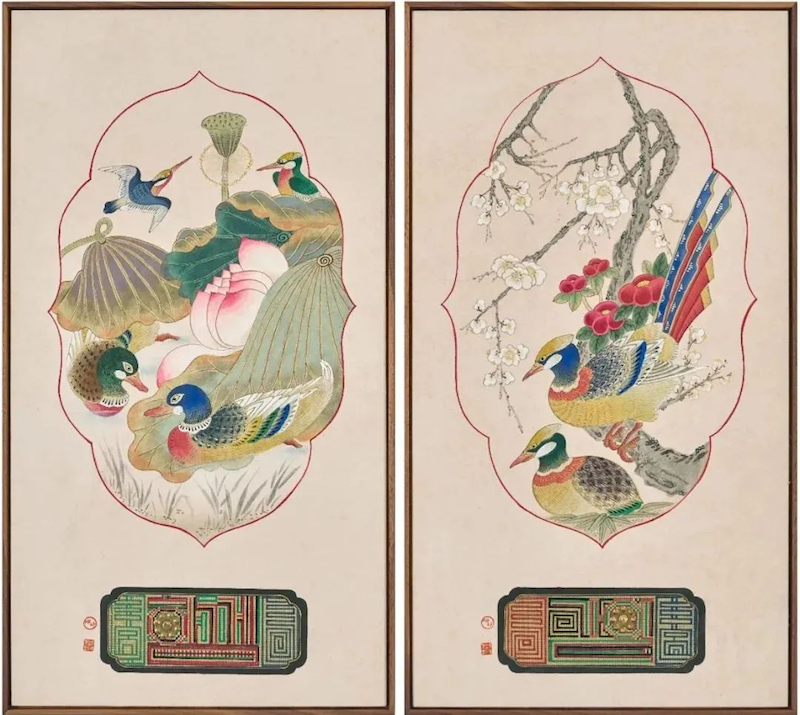 《一起花鸟文字图》,洪景姬,2023年