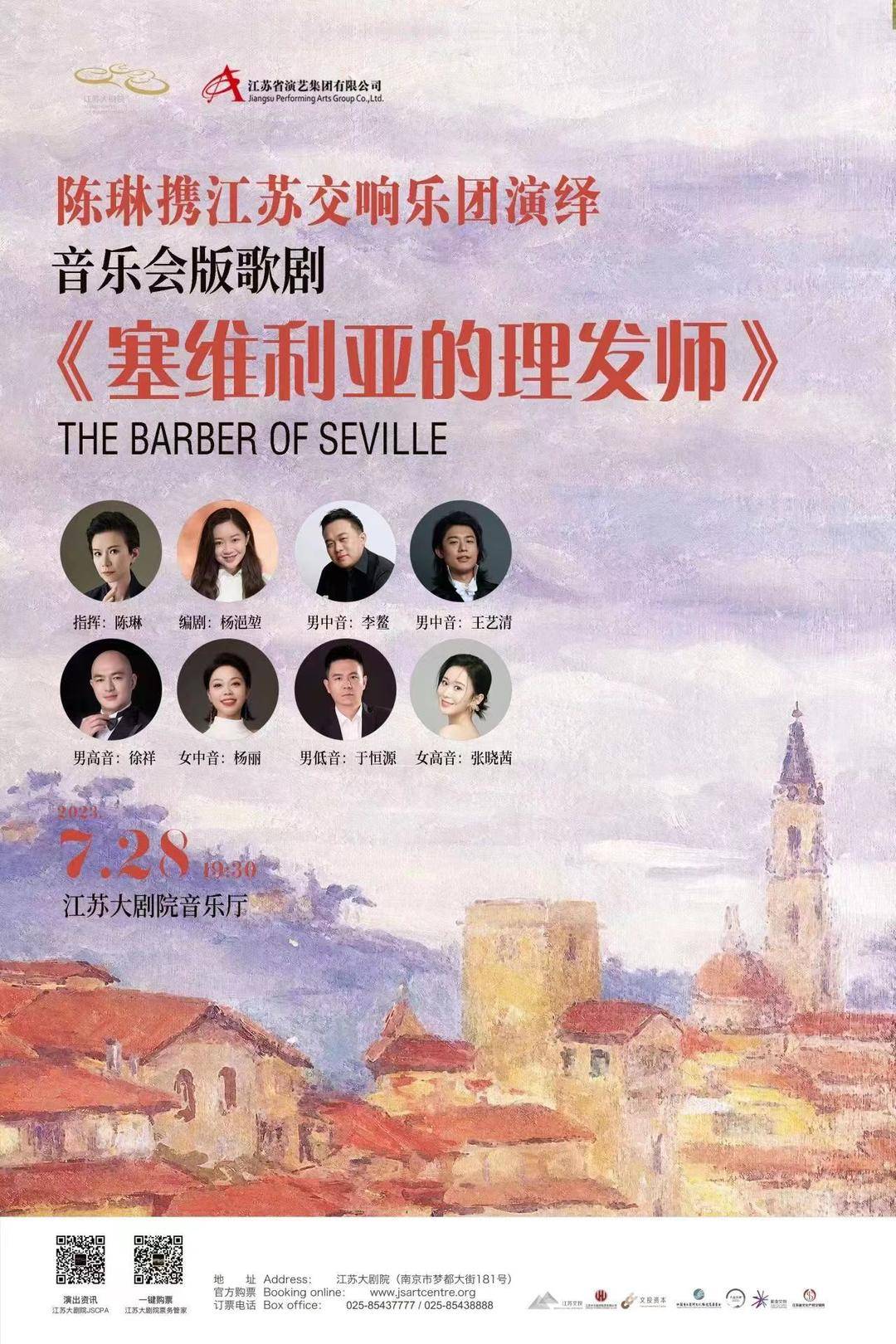7月28日,著名指挥家陈琳将携手江苏交响乐团共同演绎音乐会版歌剧《塞维利亚的理发师》。音乐会版《塞维利亚的理发师》由青年编剧杨浥堃改编,国际低男中音歌唱家李鳌、中央歌剧院男中音歌唱家王艺清、旅德青年男高音徐祥、中央歌剧院女中音歌唱家杨丽、男低音歌剧演员于恒源、青年女高音张晓茜联袂演出。