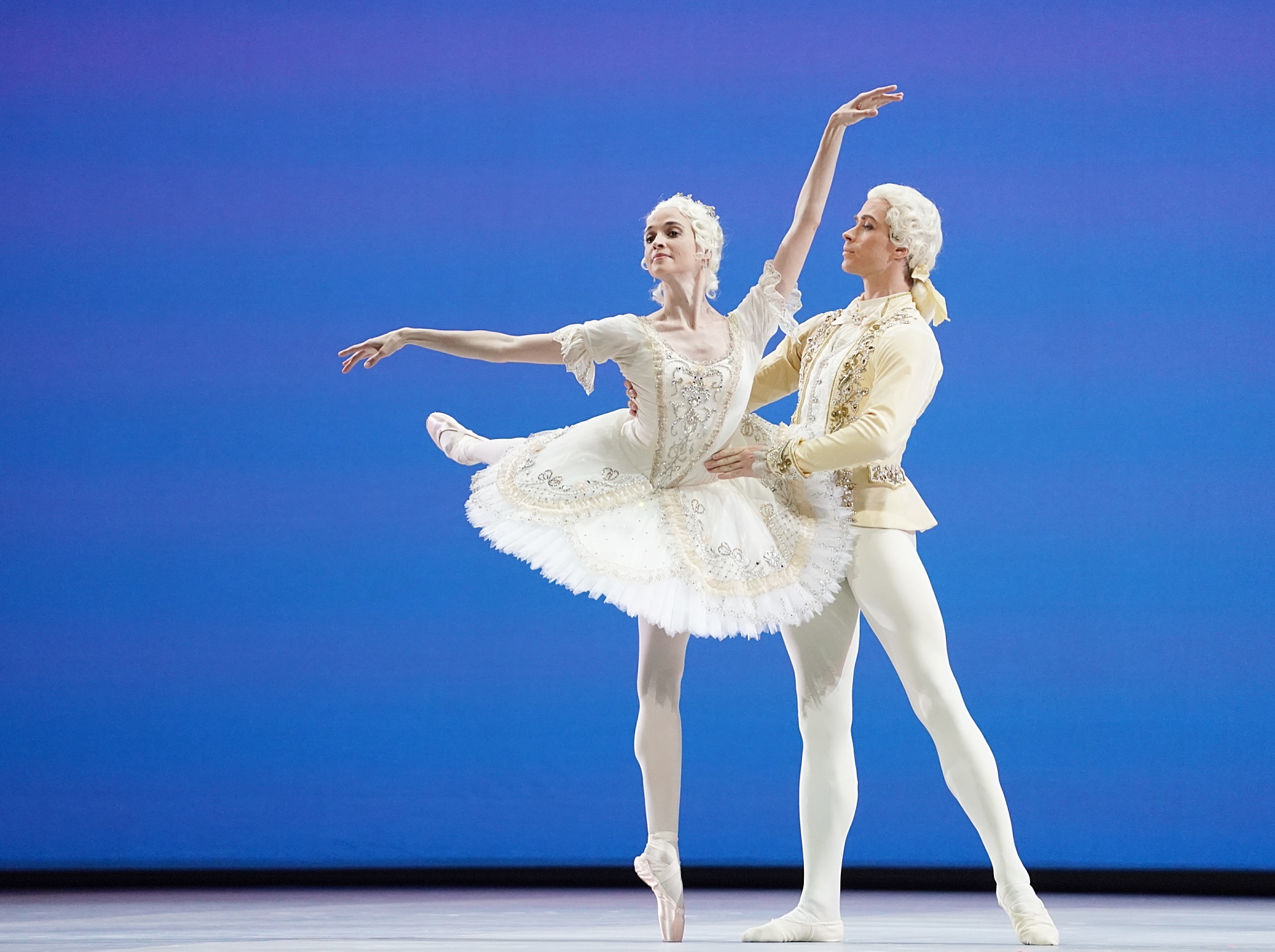 大幕拉开,“夫妻档”首席组合阿纳斯塔西娅·斯塔什克维奇、维亚切斯拉夫·洛帕京带来的舞剧《魔符》双人舞片段赢得“开门红”,摆脱地心引力般的高难度托举、信手拈来的快速挥鞭转、扑面而来的历史气息和俄罗斯风格迅速抓住观众,奠定了整晚的氛围基调。接下来,《罗密欧与朱丽叶》慢板片段、《睡美人》双人舞片段、《斯巴达克斯》双人舞片段、《天鹅湖》第二幕双人舞片段以及《春潮》《古典大双人舞》《天鹅之死》等名作轮番上演,埃莉奥诺拉·塞弗纳德、阿特米·别利亚科夫、安娜·尼库利纳、阿尔捷姆·奥夫恰连科、米哈伊尔·洛布金等一众明星首席接连登场,每段作品短暂结束时,观众的掌声似乎都要将体量庞大的歌剧院掀翻。《堂·吉诃德》极致明艳炫技的大舞段最终为整个星光璀璨的芭蕾之夜收官,舞者们数次谢幕,但美好纯粹的艺术留下的震撼久久不散。