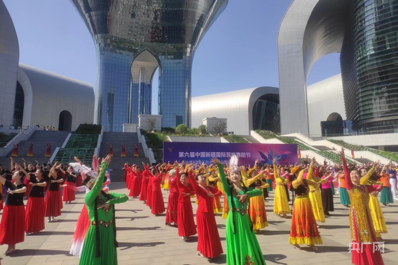 央广网乌鲁木齐7月27日消息(见习记者姜茸通讯员唐朝)7月27日,第六届中国新疆国际民族舞蹈节配套活动“一起来跳新疆舞”乌鲁木齐千人广场舞活动,在乌鲁木齐文化中心震撼上演。