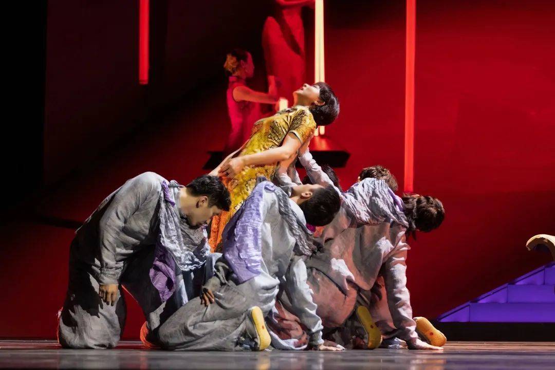 这是由著名剧作家曹禺先生编剧,著名舞蹈家金星自导自演的舞台剧《日出》中的一幕,该剧自2021年5月在上海首演以来,已成功在北京、云南、厦门、苏州等地演出。7月28日、29日,《日出》在四川大剧院“破晓”,为成都观众带来一出极具现代质感的美学表达。