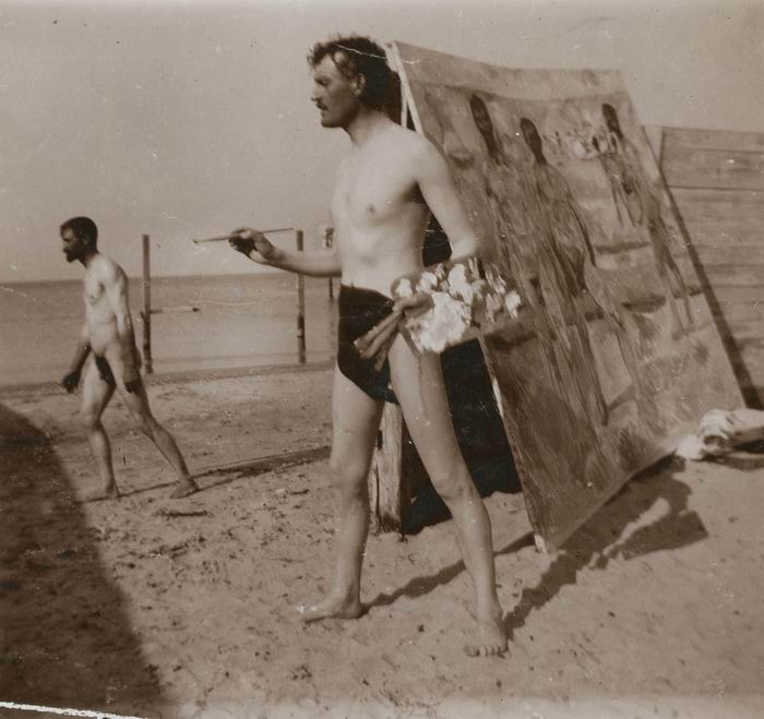蒙克在沙滩上作画,1907年©Munchmuseet