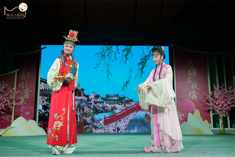 《天上掉下个林妹妹》《红楼梦·葬花》《红楼梦·读西厢》……现场,越剧专业演员们为大小戏迷们送上了越剧《红楼梦》中的经典唱段。清丽的唱腔里满含情感,让观众沉浸其中,赢得阵阵掌声。