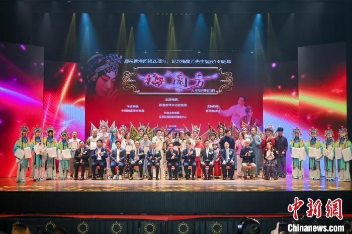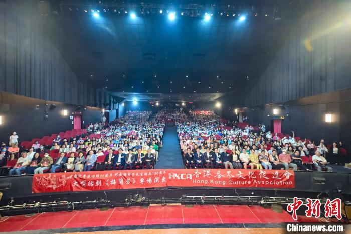 中新网香港7月31日电(记者韩星童)为庆祝香港回归26周年,纪念梅兰芳诞辰130周年,由香港各界文化促进会主办、亚洲影视与戏剧融创中心联合主办的大型话剧《梅兰芳》专场演出30日夜在香港新光戏院举行,逾千名观众到场观看。
