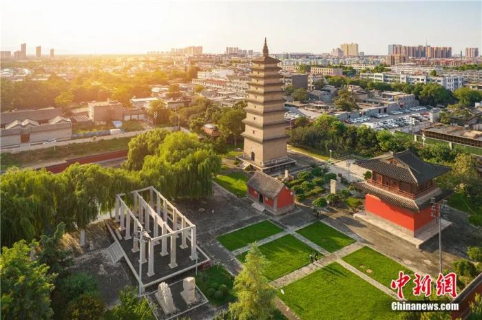 航拍晨曦中的西安市钟楼。如今,西安已成为中国古城保护与现代化发展的一个样板。视觉中国供图